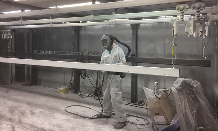 Once the metal is thoroughly cleaned, it is electrostatically charged before being sprayed.